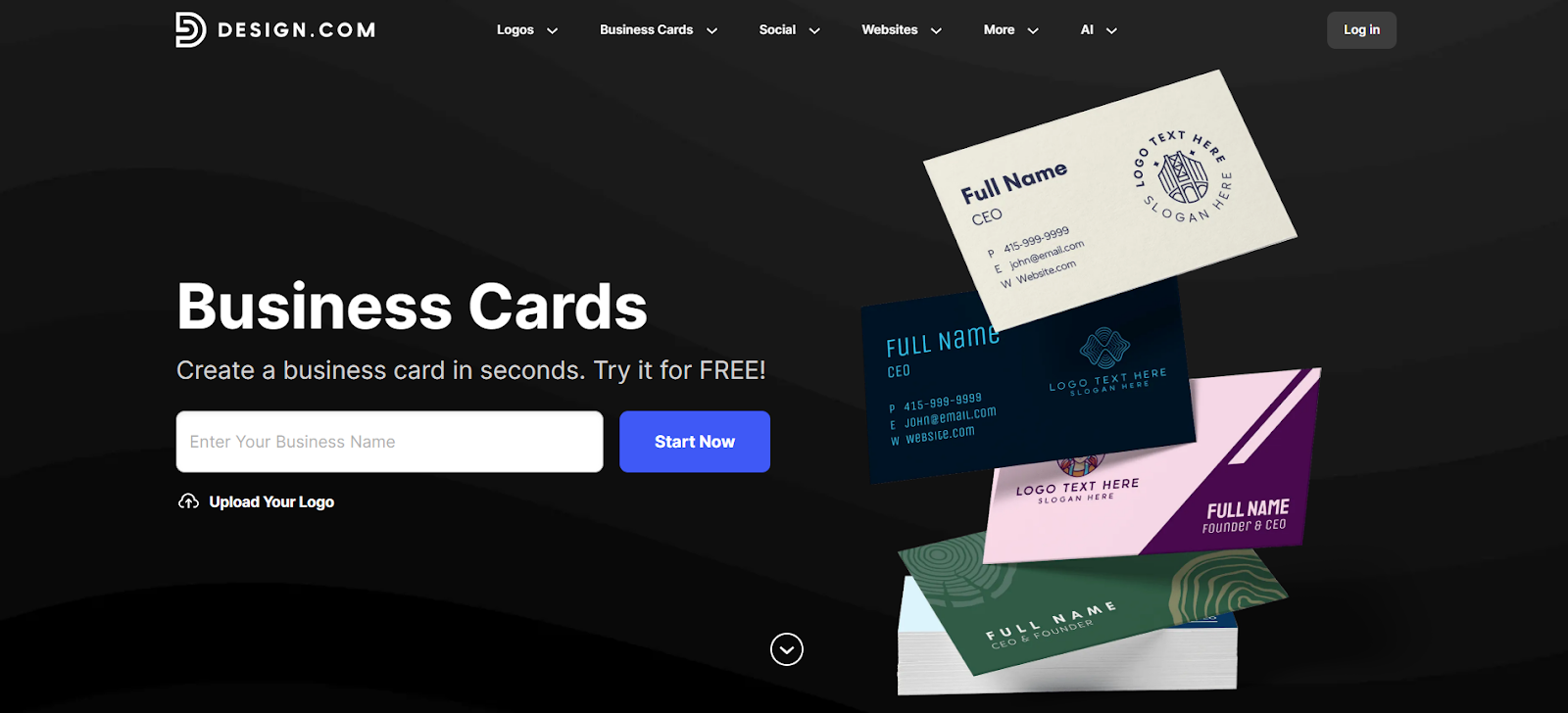 Before we do a deep dive into their business card maker tool, let’s first explain what Design.com is.